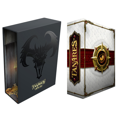 *The chosen slipcase will be bundled with your Campaign Sourcebook, Player's Guide to Tanares, the Adventure in the Realms of Madness physical books, a Deluxe Master Screen, and a double-sided A1 poster map of the world and of the Imperial Capital as part of the Essential Box. Its content is the same and does not change.